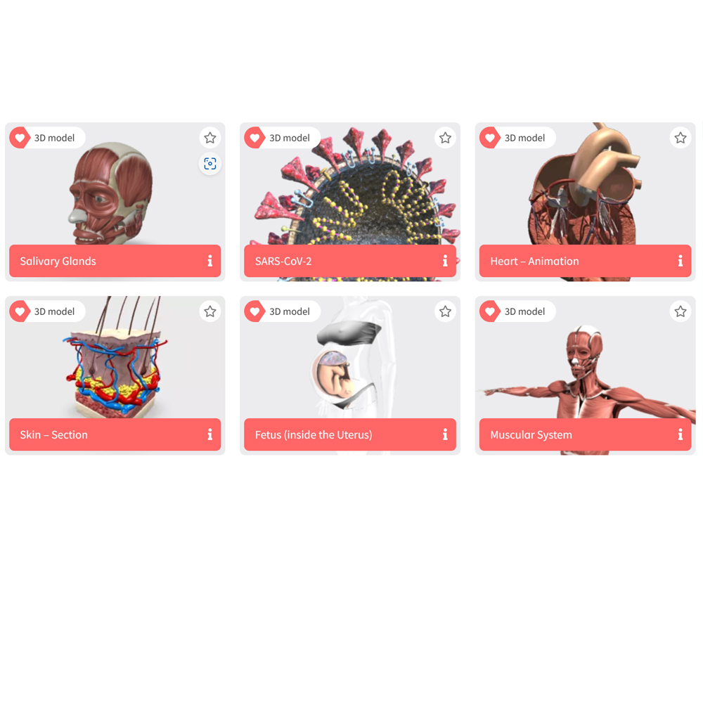 Người dùng có thể làm nổi bật các bộ phận đã chọn của mô hình, điều hướng giữa các mô hình 3D theo chủ đề liên quan và tìm kiếm theo từ khóa hoặc chủ đề.
